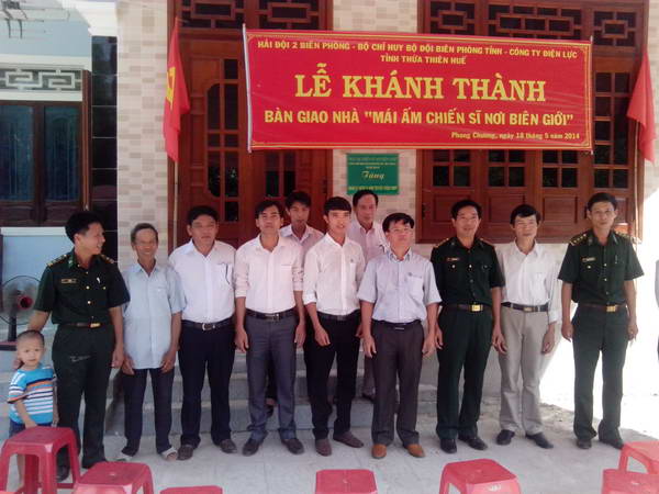 Hưởng ứng chương trình “Mái ấm Chiến sĩ nơi Biên giới” Cán bộ CNVCLĐ Công ty Điện lực Thừa Thiên Huế đã hổ trợ 60 triệu đồng để đồng chí Võ Kha xây dựng nhà nhằm ổn định cuộc sống yên tâm công tác, sẵn sàng tuần tra canh gác vảo vệ biên cương hải đảo của Tổ quốc , đây là món quà chứa đựng tình cảm của cán bộ CNVCLĐ Công ty Điện lực Thừa Thiên Huế gửi gắm đến gia đình anh Võ Kha.